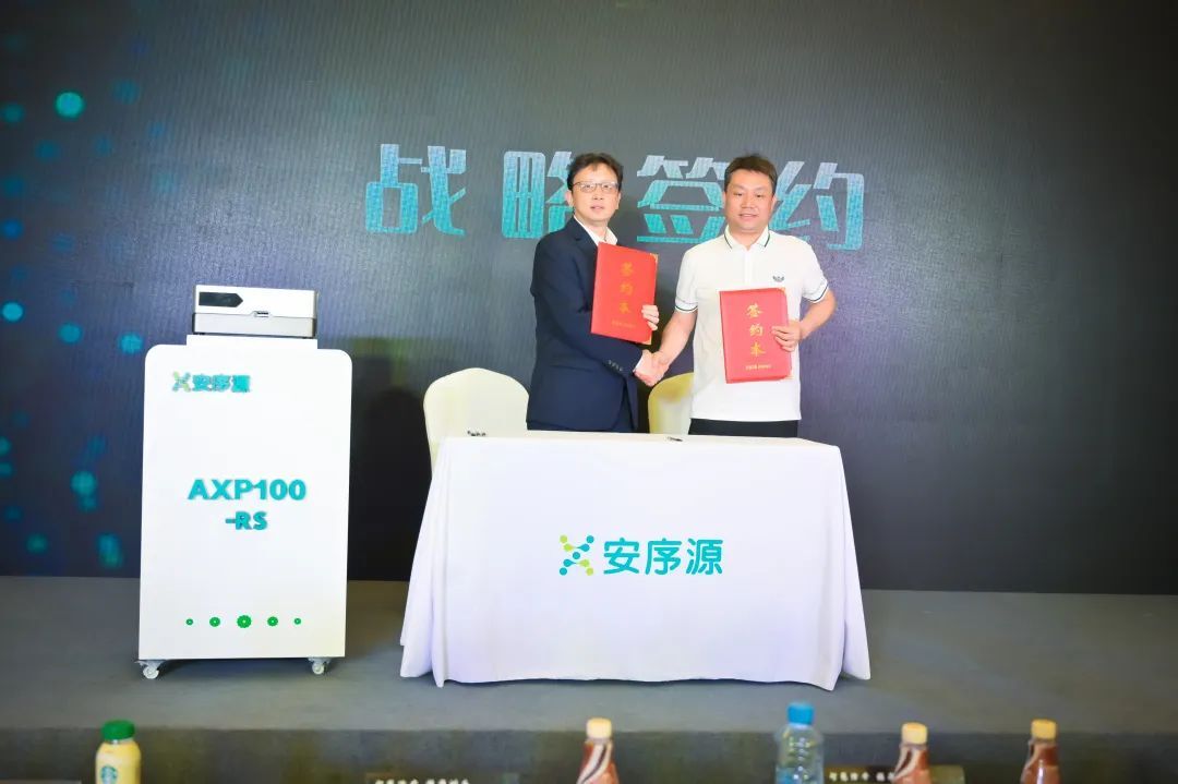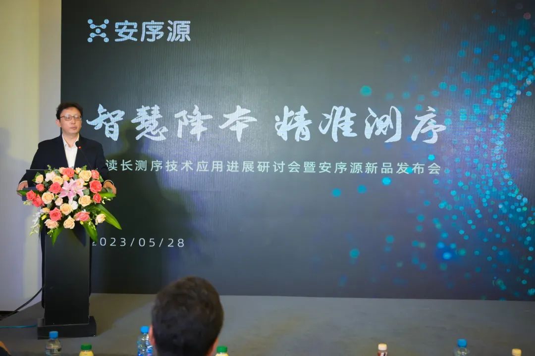 上午10:30,在安序源主办的《智慧降本,精准测序——长读长测序技术应用进展研讨会暨安序源新品发布会》上,亿康医学产品研究部万成总监、中国疾病预防控制中心传染病预防控制所研究员周海健老师、安序源创始人兼CEO田晖博士、昆明理工大学石宏教授、安序源CSO田君君女士、内蒙古农业大学靳昊博士共同启动安序源第四代纳米孔基因测序仪AXP100-RS发布仪式,见证测序领域革命性平台的诞生。