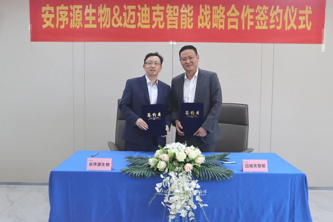 近日,安序源与长沙迈迪克智能科技有限公司(以下简称“迈迪克”)在长沙迈迪克园区正式签署战略合作协议,双方基于前期在基因测序领域的交流探讨,达成了深入合作共识,将共同为测序产业助力发展,加快构建行业新生态。
